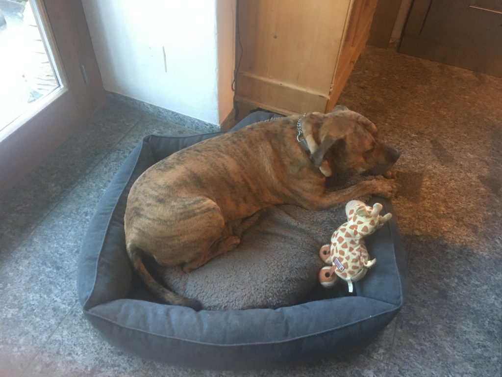 Das erreicht man mit erbaulichen, entspannenden Aktivitäten wie zum Beispiel Schnüffelspielen oder dem Kauen eines getrockneten Schweinsohrs. Diese Aktivitäten beschäftigen den Hund, ohne ihn aufzuregen. Wichtig ist aber vor allem auch genügend Ruhe und Schlaf, damit er Stress abbauen kann.